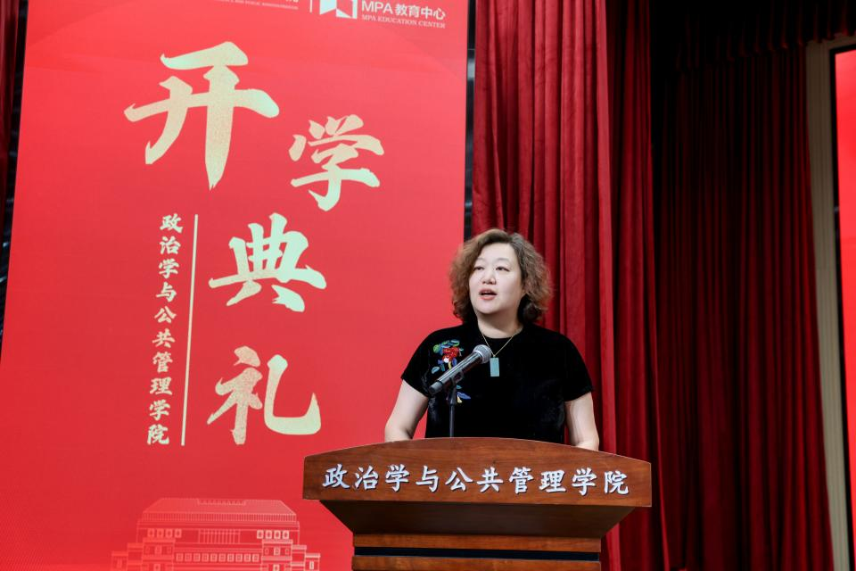 李海燕为全体新生讲述“开学第一课”。他系统回顾了山大的发展历程以及政治学与公共管理学院的建院历史,深入阐释了学院院徽和院训的精神内核,勉励大家要勇担时代重任,以先辈和校友为榜样,勤奋学习,在与时代、与国家、与山大、与政管一起奋进中绽放精彩,在实现中华民族伟大复兴的中国梦的不懈奋斗中,书写人生华章,贡献青春力量。