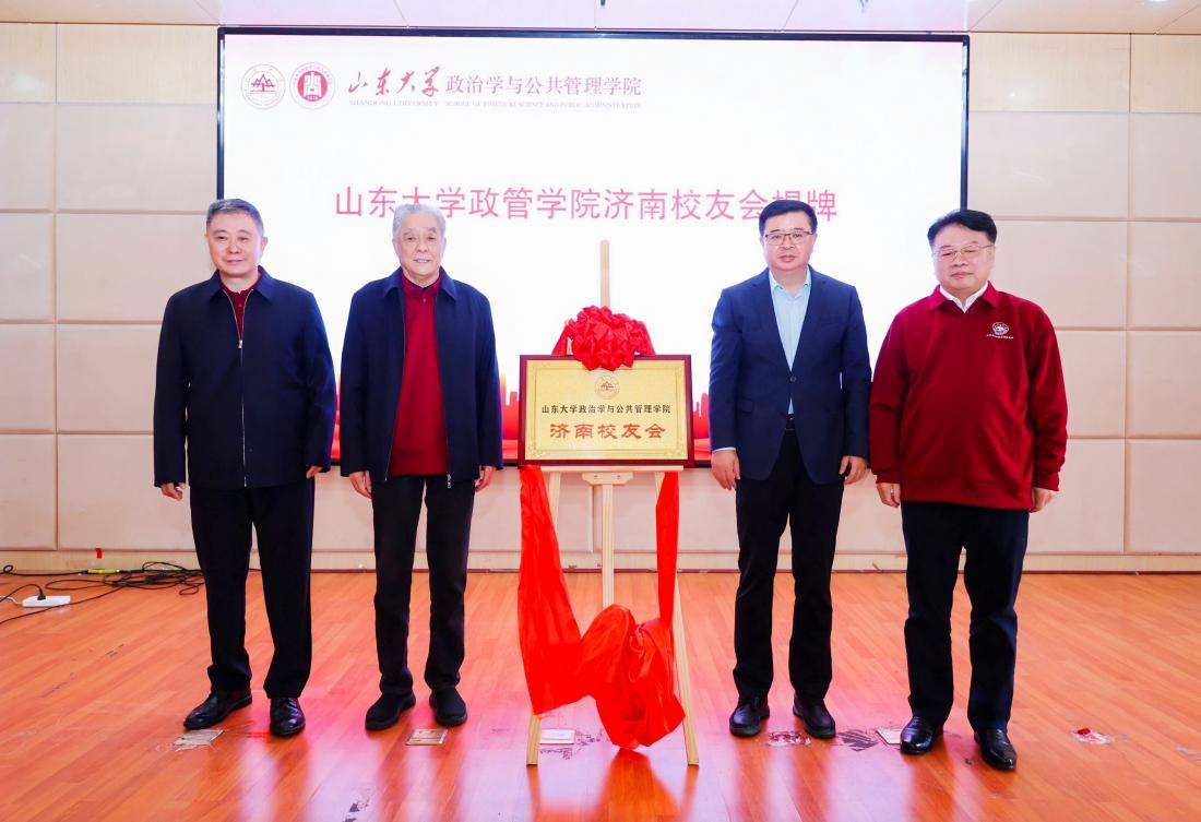 马奔、丁日恒、宋云峰、张忠军为政管学院济南校友会揭牌。