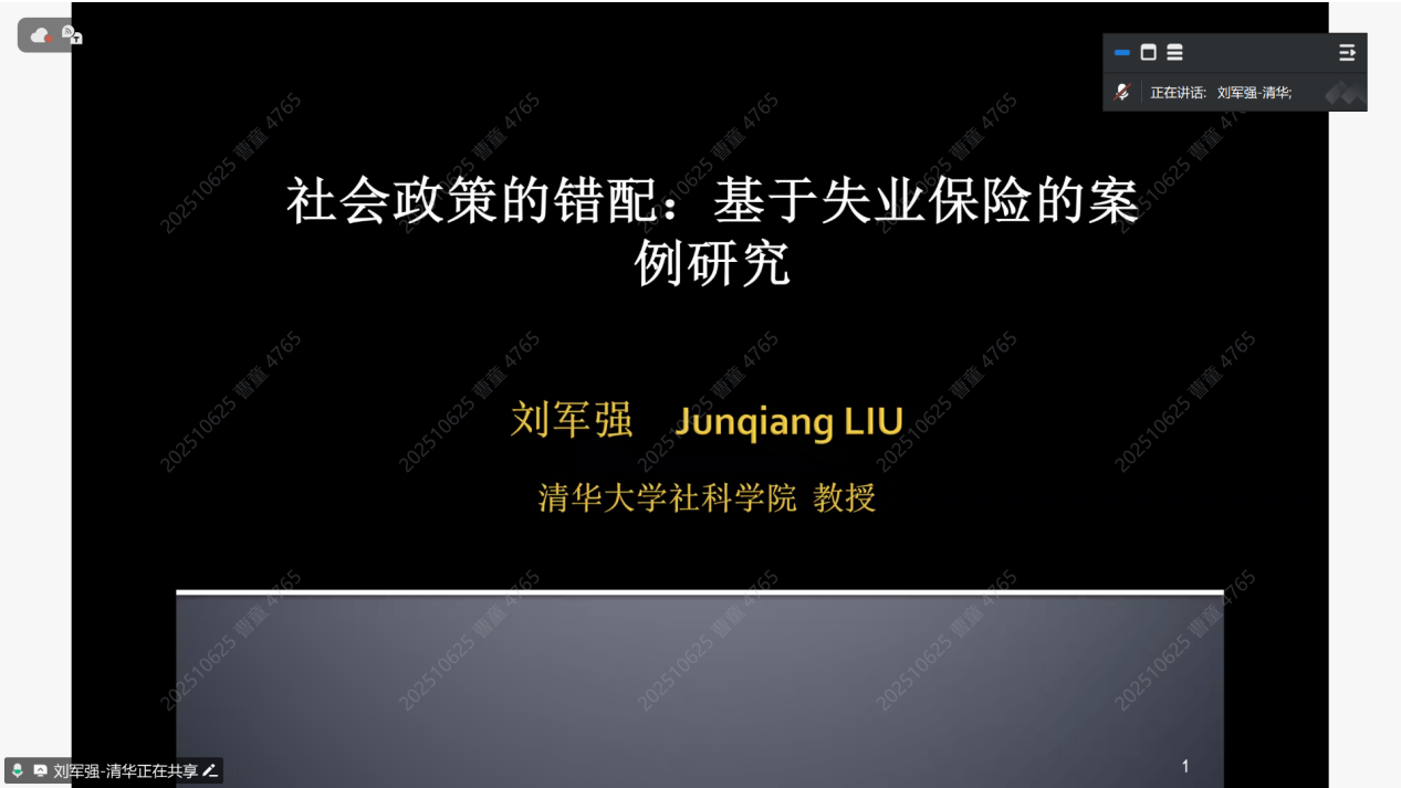 10月18日晚,由山东大学政治学与公共管理学院、山东大学亚太研究所主办,亚太研究所亚太国家社会与人文研究中心承办的“社科与人文”系列讲座第三十七讲在线上成功举办,讲座围绕“社会政策的错配——基于失业保险的案例研究”展开,由清华大学社会学系长聘教授刘军强主讲,亚太研究所副所长钟诚副教授主持讲座,中国社会科学院社会学研究所梁晨副研究员、亚太研究所亚太国家社会与人文研究中心主任黄春蕾教授担任与谈人。