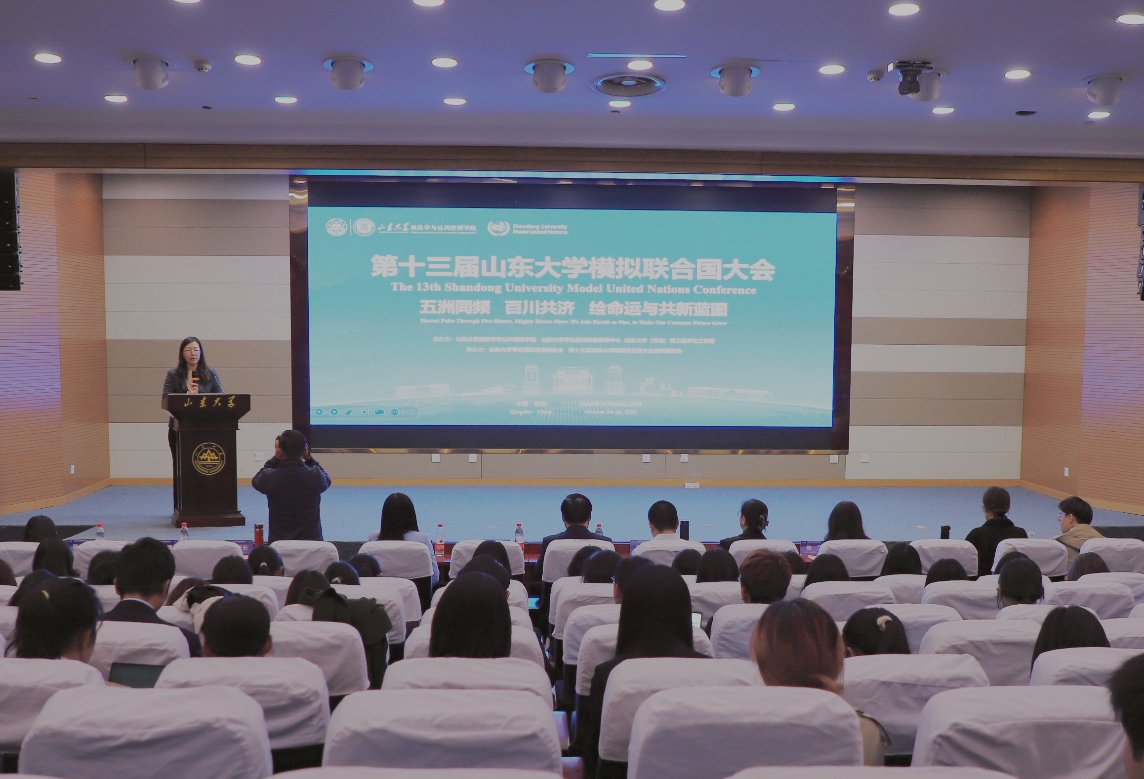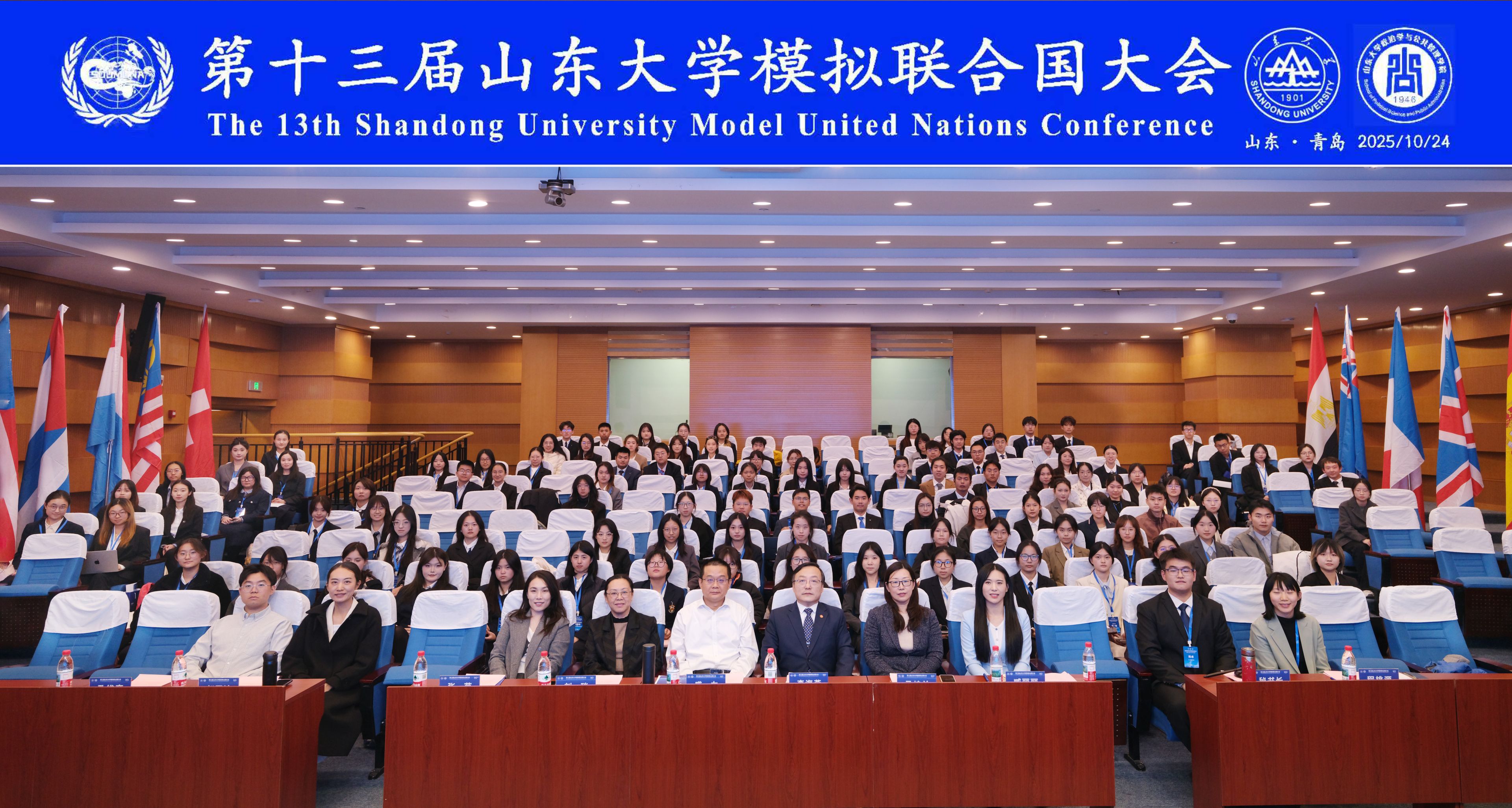 第十三届山东大学模拟联合国大会由山东大学学生就业创业指导中心、山东大学青岛校区党工委学生工作部、山东大学政治学与公共管理学院主办,山东大学模拟联合国协会承办,吸引了来自全国十余所高校160余名师生代表参会。大会主题为“五洲同频,百川共济,绘命运与共新图景”,大会秉承求同存异、合作共赢的核心理念,设置两个中文会场、两个英文会场,为与会者打造一个充分交流的平台,共同推动国际理解与合作的深入发展。