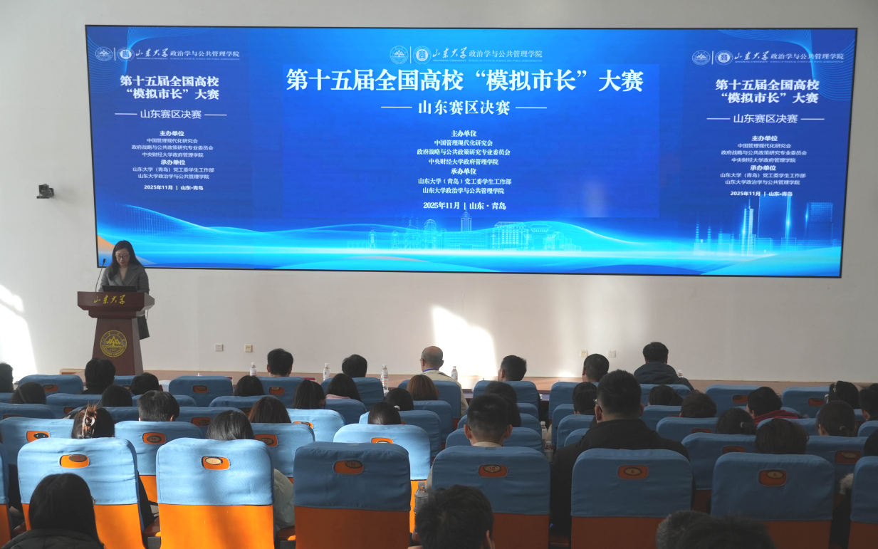 11月2日,第十五届全国高校“模拟市长”大赛山东赛区决赛在山东大学青岛校区举行。中共青岛市委党校原分管日常工作的副校长、一级巡视员王涛,山东大学青岛校区党工委副书记宋作标,中国海洋大学海洋发展研究院院长、教授王琪,中央财经大学政府管理学院副教授、城市管理系副主任柴铎,山东大学政治学与公共管理学院副教授、神经与行为公共管理实验室主任刘华兴,山东大学政治学与公共管理学院副教授、山东大学MPA教育中心副主任杨志等嘉宾出席开幕式。开幕式由山东大学政治学与公共管理学院党委副书记马桂兰主持。