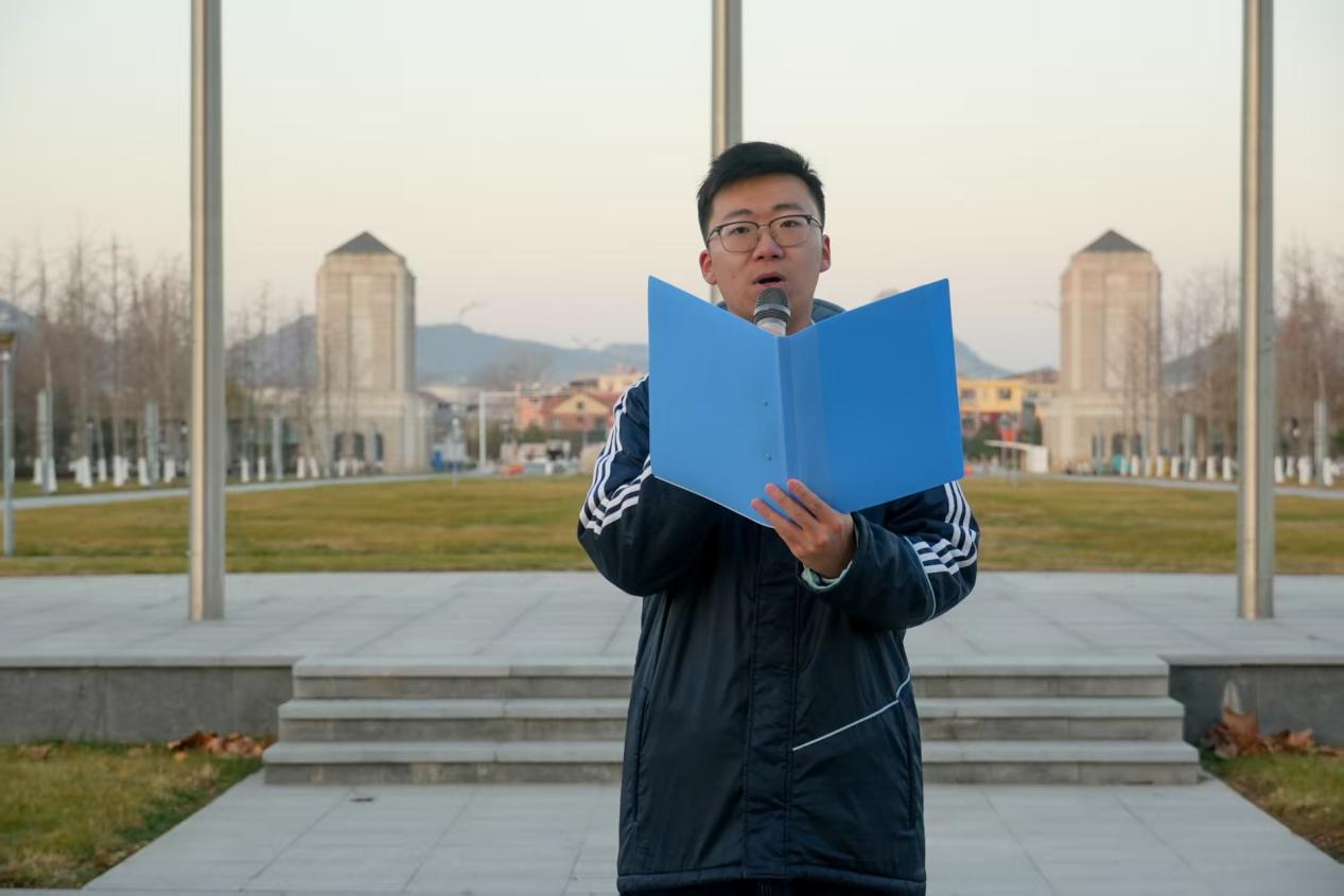 政管学院政治学类本科生党支部书记田清文作国旗下讲话。他带领大家回顾“一二·九”运动的光辉历史,号召青年党员自觉爱国报国,密切联系群众,发挥先锋模范作用,努力为实现第二个百年奋斗目标贡献青春智慧。