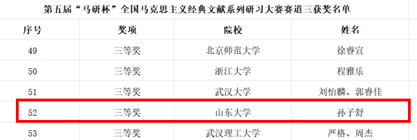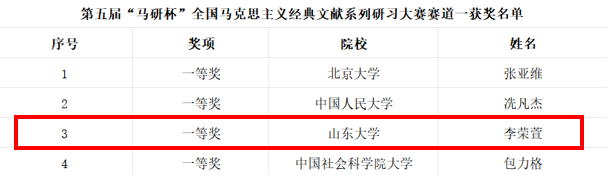 在全国马克思主义经典文献研习大赛中,学院学子再创佳绩:李荣萱同学在赛道一荣获一等奖、孙子舒同学在赛道三荣获三等奖。此项大赛由武汉大学马克思主义学院联合北京师范大学、山东大学等9所全国重点马克思主义学院共同举办,共收到来自北京大学、清华大学等上百所高校的近500份参赛稿件。