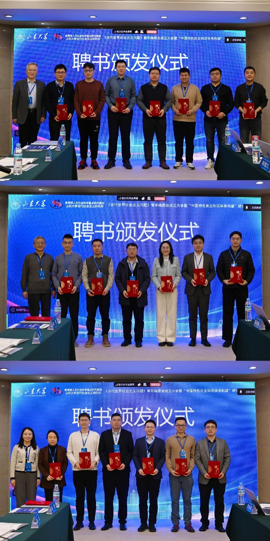 随后举行青年编委聘任证书颁发仪式,方雷、当代社会主义研究所副所长蒋锐教授和政治学与公共管理学院副院长、当代社会主义研究所副所长赵婷教授为青年编委代表颁发聘书。