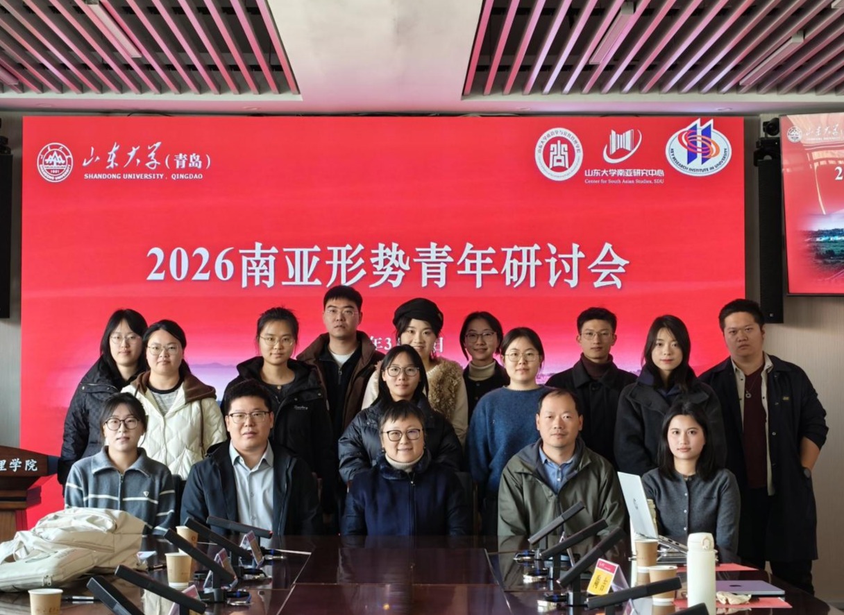 3月12日,由山东大学政治学与公共管理学院主办,山东大学南亚研究中心、巴基斯坦研究中心与四川大学南亚研究所联合举办的“2026南亚形势青年研讨会”在华岗苑南楼顺利举行。研讨会由山东大学南亚研究中心、巴基斯坦研究中心主任张淑兰教授与四川大学南亚研究所曾祥裕副研究员共同主持。